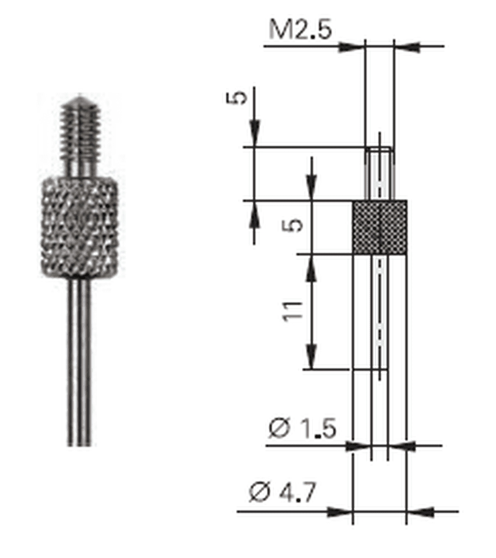 Stylus - M4, Ø=5mm ruby ball & L=100mm steelshaft