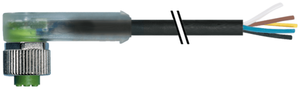 M12 female 90° A-cod. with cable LED PUR 5x0.34 bk UL/CSA+drag ch. 5m