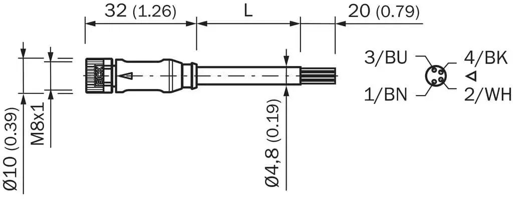 YF8U14-050VA3XLEAX - Cable set, M8 socket - Uninsulated ends, 4 Conductors, 5m, IP67, Grey, Sick