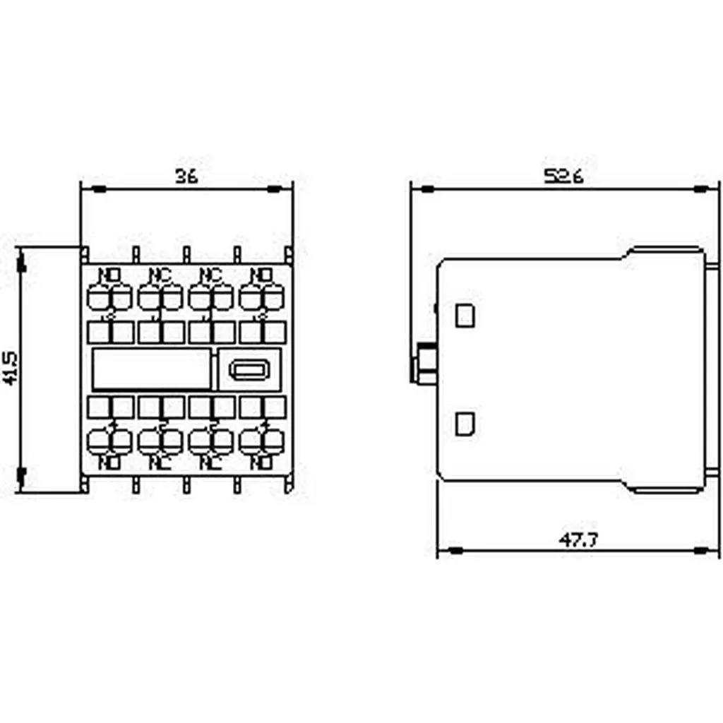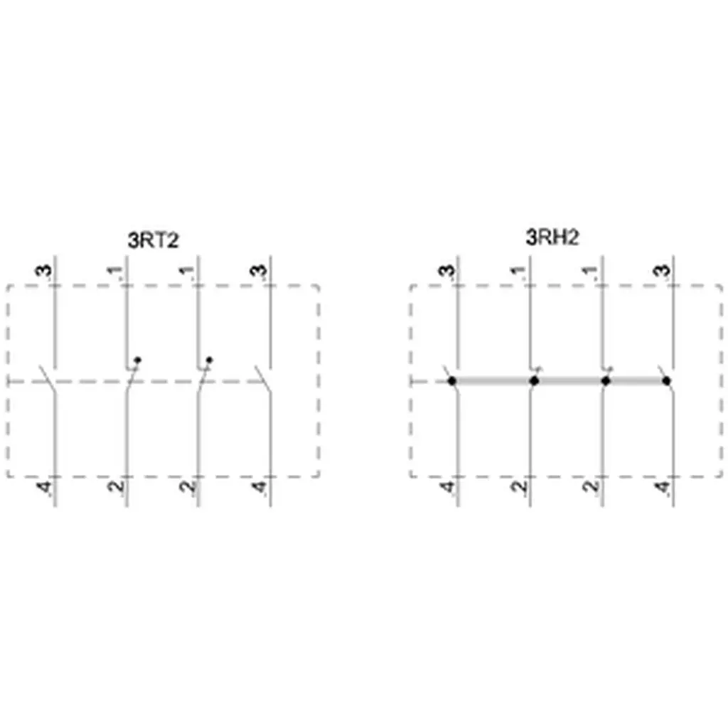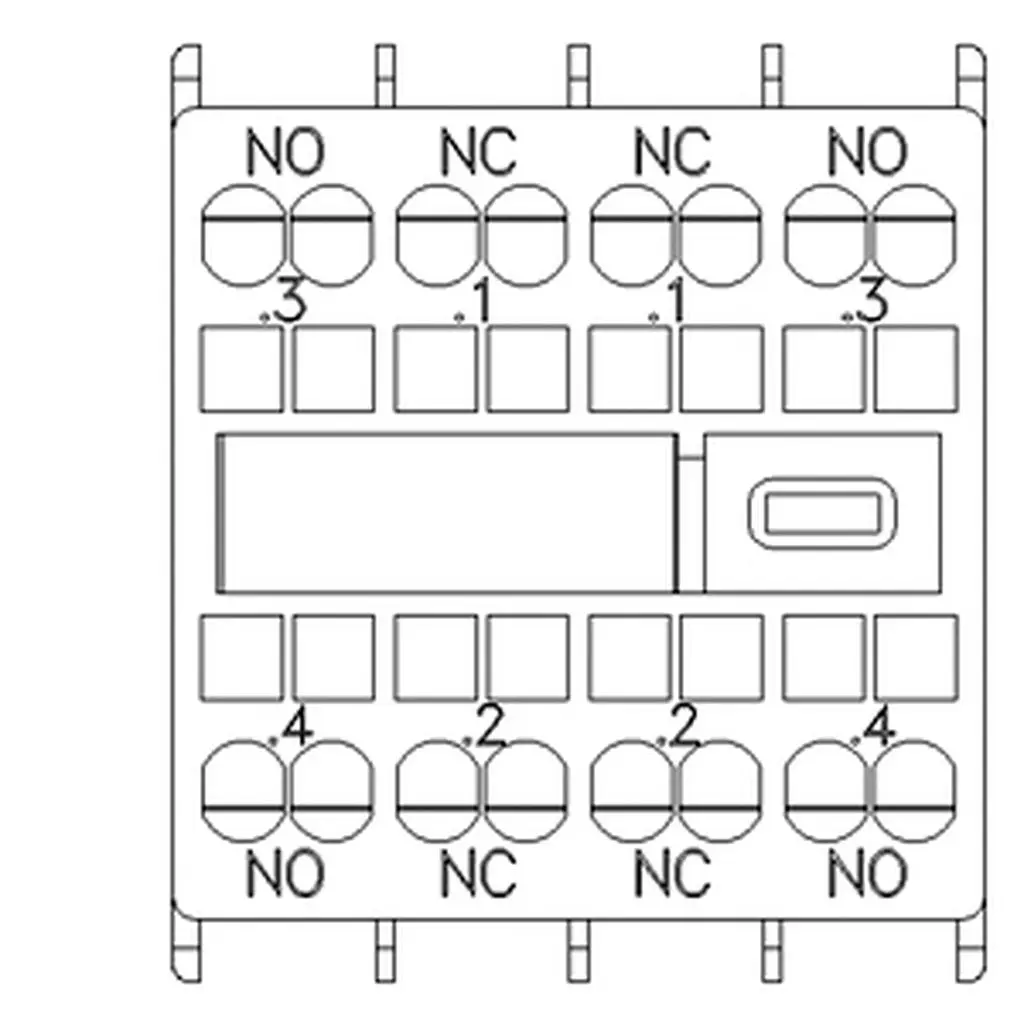 auxiliary switch, on the front, 2 NO + 2 NC, .3/.4, .1/.2, .1/.2, .3/.4, current path: 1 NO, 1 NC, 1 NC, 1 NO, spring-loaded terminal, for contactors 3RT2 and contactor relays 3RH2