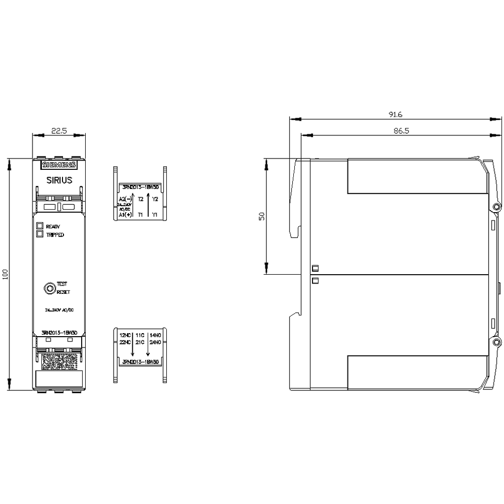 Thermistor motor protection relay Standard evaluation unit 22.5 mm enclosure screw terminal 2 change-over contacts US = 24 V-240 V AC/DC Manual/Auto/Remote reset with ATEX approval 2 LEDs (READY/TRIPPED) Safe galvanic isolation Test/reset button Wire break monitoring Short circuit monitoring non-volatile