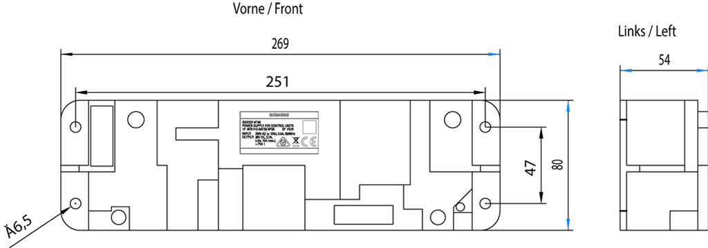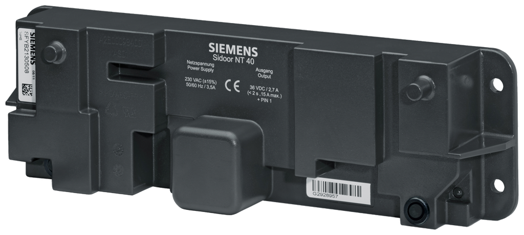 SIDOOR NT40 Switched-mode power supply, Input voltage: 230V AC (+-15%), 50/60 Hz, Output voltage: 36VDC, IP54, incl. line cable with Safety plug (CEE 7/4) of the Length 2 m, incl. connecting cable to Control device of length 1.5 m, -20 to +55 °C
