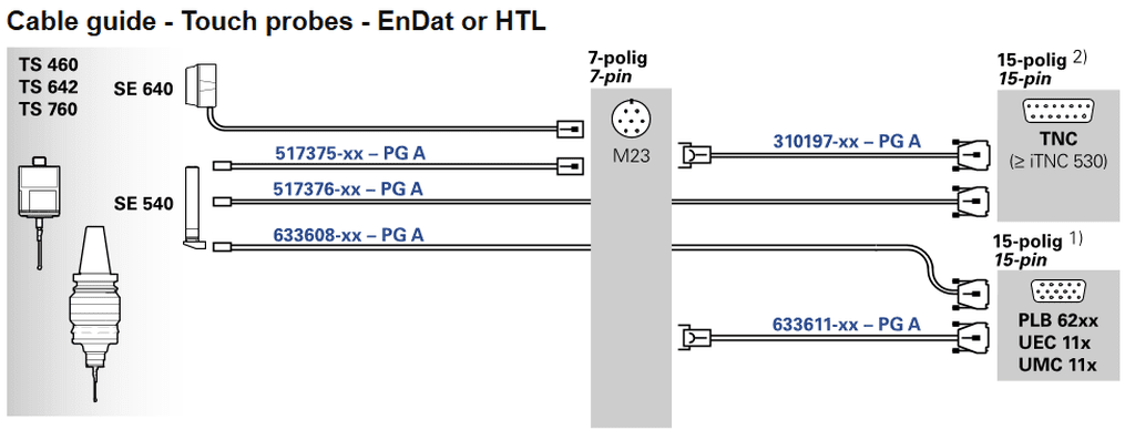 TS 750 .. 7DL02 QE 0.00 .. T434 .. .. 0069 Workpiece touch probe Repeatability: 0.25 µm Output signal: Electrical connection: PCBA contact strip, female, 2-pin Cable type: w/o cable Stylus geometry: T434 L=40 mm, ball Ø 4 mm, shaft Ø 3 mm, without rated break point Axial deflection force: 8.0 N Housing material: Steel, stainless (1.4104)