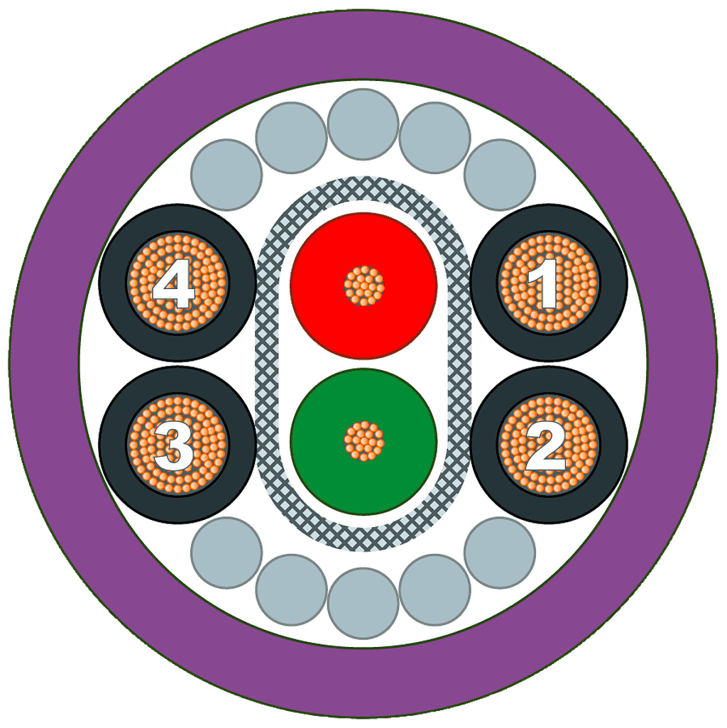 PROFIBUS ECOFAST Hybrid Cable, Trailable cable with 4x Cu (1.5 mm2) and 2xCU (0.64mm) shielded sold by the meter, Delivery length max. 1000 m Minimum order quantity: 20 m