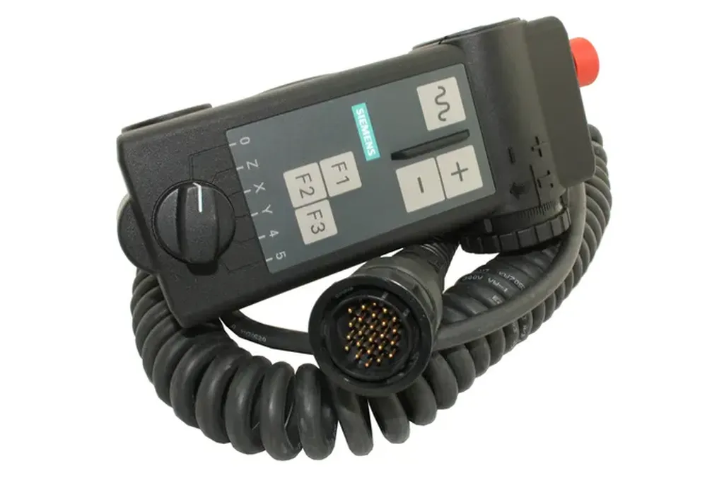 SINUMERIK FM NC/840D 6FX2007-1AE04 handheld unit B-MPI spiral cable 3.5 m 2-channel EMERGENCY OFF 2-channel acknowledgement button, 3-stage with 4-wire connection