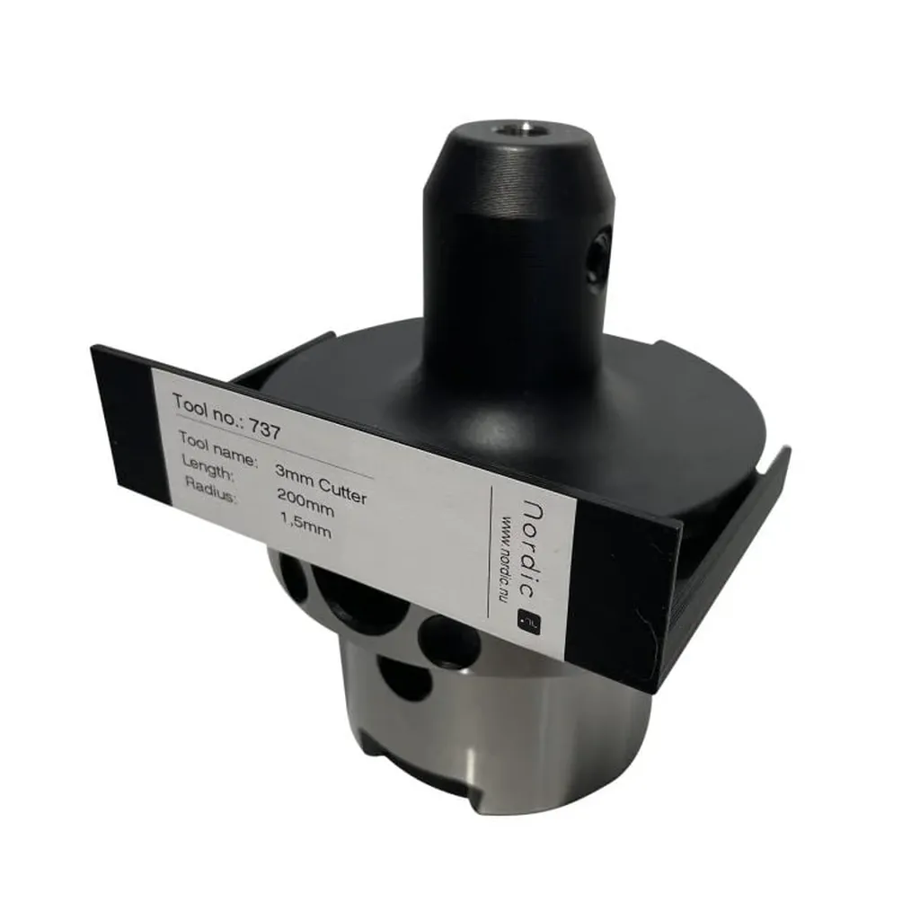 Skiltet måler 82x30mm, og der er derfor plads til bl.a. standard labels (25x76mm) der benyttes af Zoller værktøjsopmålere.