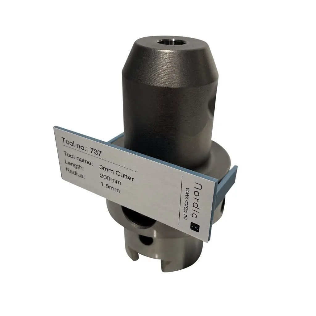 Skiltet måler 82x30mm, og der er derfor plads til bl.a. standard labels (25x76mm) der benyttes af Zoller værktøjsopmålere.