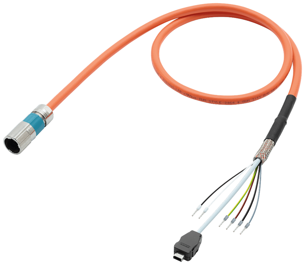 Single cable pre-assembled 4G1,5+1Q0,2STC+1P1,5C-C SPEED-CONNECT connector M23 Wires with end sleeve Data cable with IX connector UL/CSA DESINA MOTION-CONNECT 800PLUS Dmax.=12.3 mm length(M)= 0 + 10 + 0 + 0