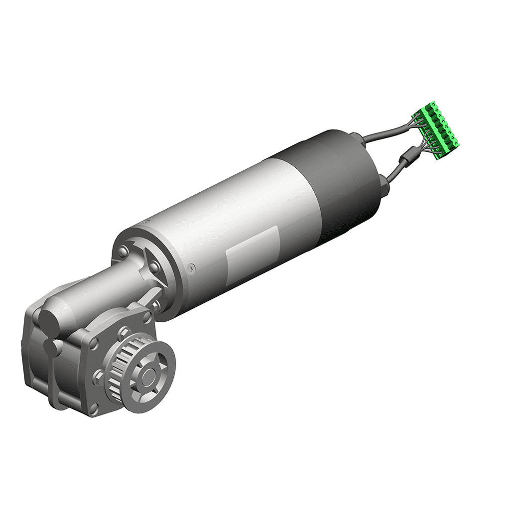 SIDOOR MDG3 R geared motor, shaft on the right with slot and fitted key A3x5 according to DIN 6888, max. 180 kg of mass to be moved, IP56, 2x M12 for separate motor connection cable, 30 V DC, -20 to +50 °C