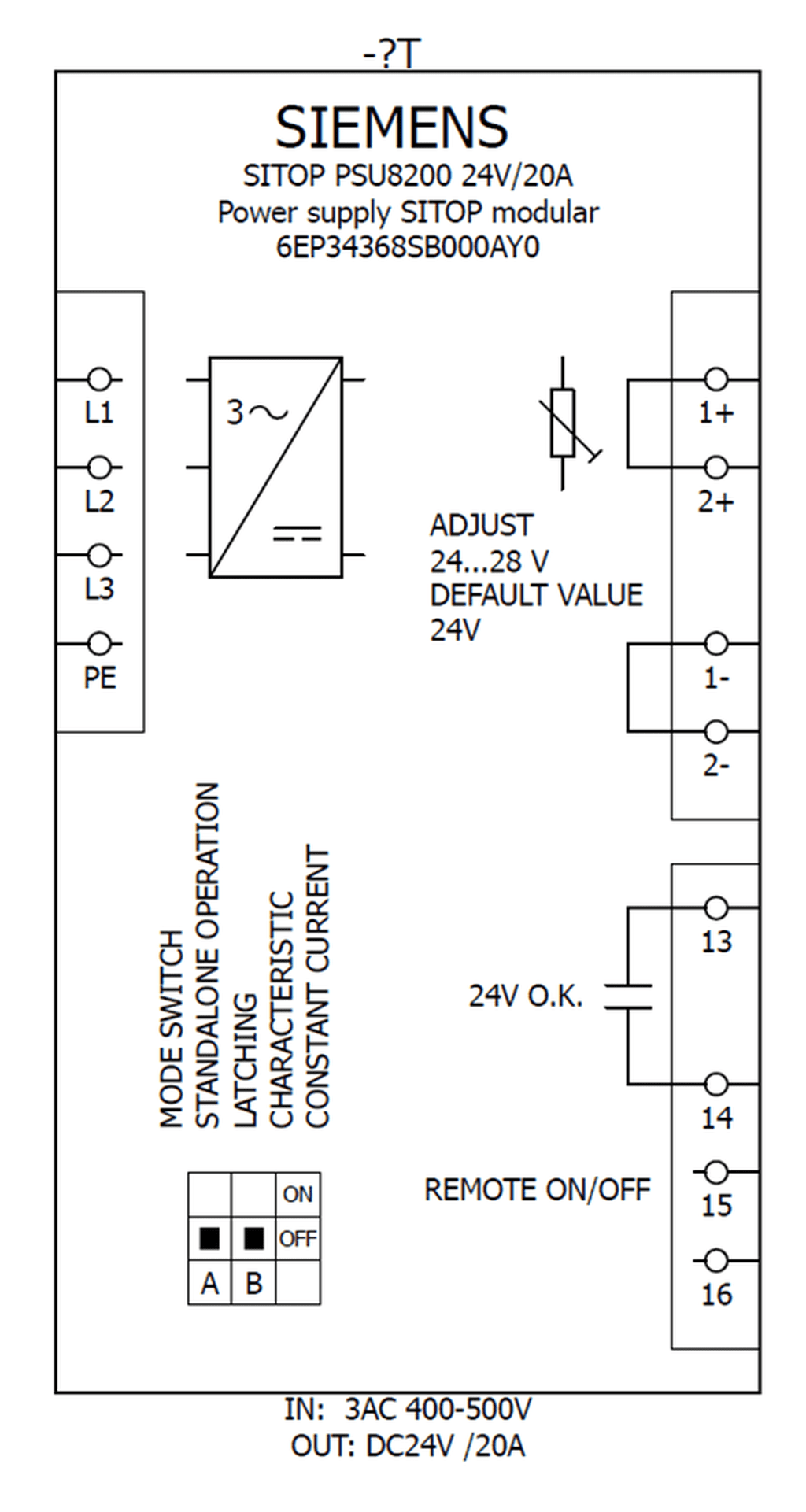 SITOP modular 40 A Stabilized power supply input: 400-500 V 3 AC output: 24 V DC/40 A *Ex approval no longer available*