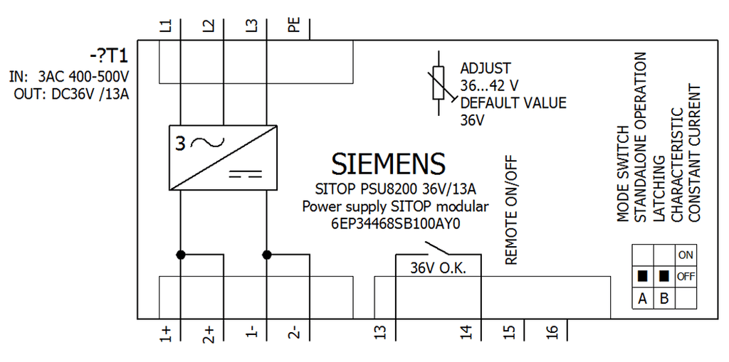 SITOP PSU8200 36 V/13 A stabilized power supply input: 400-500 V 3 AC output: 36 V DC/13 A *Ex approval no longer available*
